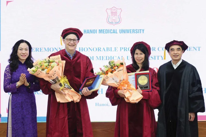 Professors Miller (left) and Go (right) receive Honorable Professorships from Hanoi Medical University.