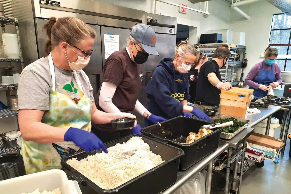 Good Bowls partners and local volunteers assemble healthy meals for families in Chatham County.