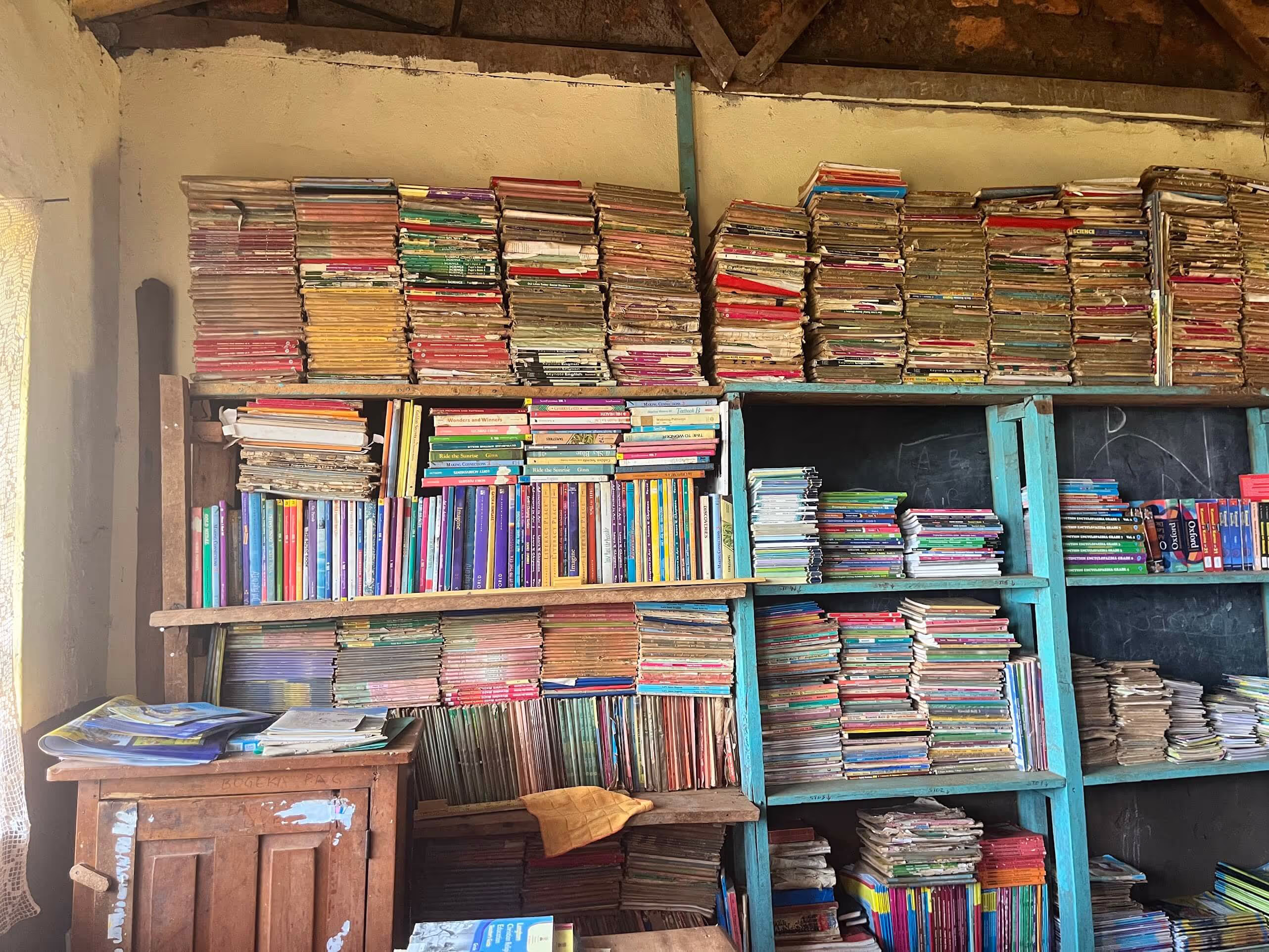 Many of the schools we visited had signs painted on their buildings promoting good public health practices. As we walked through each classroom, I gained insights into their daily lessons from the notes written on the chalkboards. Students sat closely together on wooden benches lined neatly in rows. In one school, a library was tucked into a small room at the back, stocked with donated storybooks and workbooks, which children could borrow as needed. One of my favorite memories was being led around a school by a cheerful six-year-old student who proudly held my hand, eager to show me her classroom.